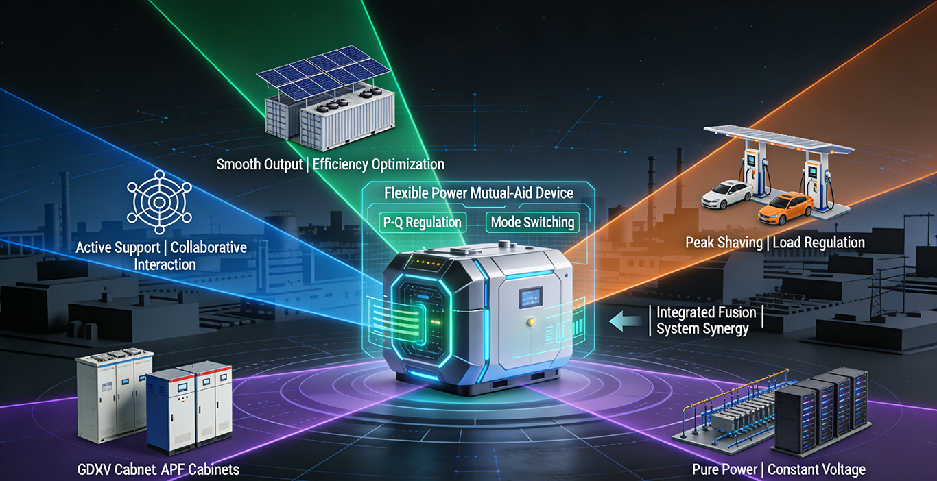 Legyen szó kondenzátortelepekről vagy SVG-ről, a hagyományos kisfeszültségű meddőteljesítmény-kompenzáló berendezések fő feladata a „menedzsment” – más szóval a kompenzálás és a hiba fellépése utáni javítás, nagyon világos működési határokkal. Ezzel szemben a „Flexible Power Mutual-Aid Device” sokkal szélesebb hatókörrel rendelkezik. Ahogy a neve is sugallja, a "rugalmas" az eszköz azon képességére utal, hogy ezredmásodperceken belül sima és precíz teljesítményszabályozást ér el, teljesen szabályozott teljesítményű elektronikus eszközökön alapulva; A „Power Mutual-Aid” felfedi az eszköz lényegét – nemcsak rugalmas meddőteljesítmény-kompenzációt ér el, hanem kulcsszerepet játszik a pillanatnyi aktív teljesítményszabályozásban, a háromfázisú kiegyensúlyozatlanság kezelésében, sőt az energiatároló rendszerekkel való együttműködésben is. Ez a „Flexible Power Mutual-Aid Device” egységes hardverplatformba és vezérlőrendszerbe integrálja a hagyományosan független aktív teljesítményszabályozás, meddőteljesítmény kompenzáció és energiaminőség-kezelés funkcióit. Ez azt jelenti, hogy összetett forgatókönyvek esetén, mint például a napelemes teljesítmény hirtelen csökkenése a parkon belül vagy a töltőállomások terhelésének hirtelen növekedése, a „Flexible Power Mutual Aid Device” már nem csupán meddőteljesítmény-támogatást nyújt, hanem átfogó „teljesítménycsomag” szabályozást is végrehajthat a rendszer általános stabilitásának elérése érdekében. Ez tökéletesen illeszkedik a Global Energy Interconnection Development and Cooperation Organisation által szorgalmazott "forrás-hálózat-terhelés-tárolás" együttműködési interakciós trendhez. Ez megköveteli, hogy az elosztóoldali berendezések passzív válaszról a rendszer egyensúlyában való aktív részvételre váltsanak.
